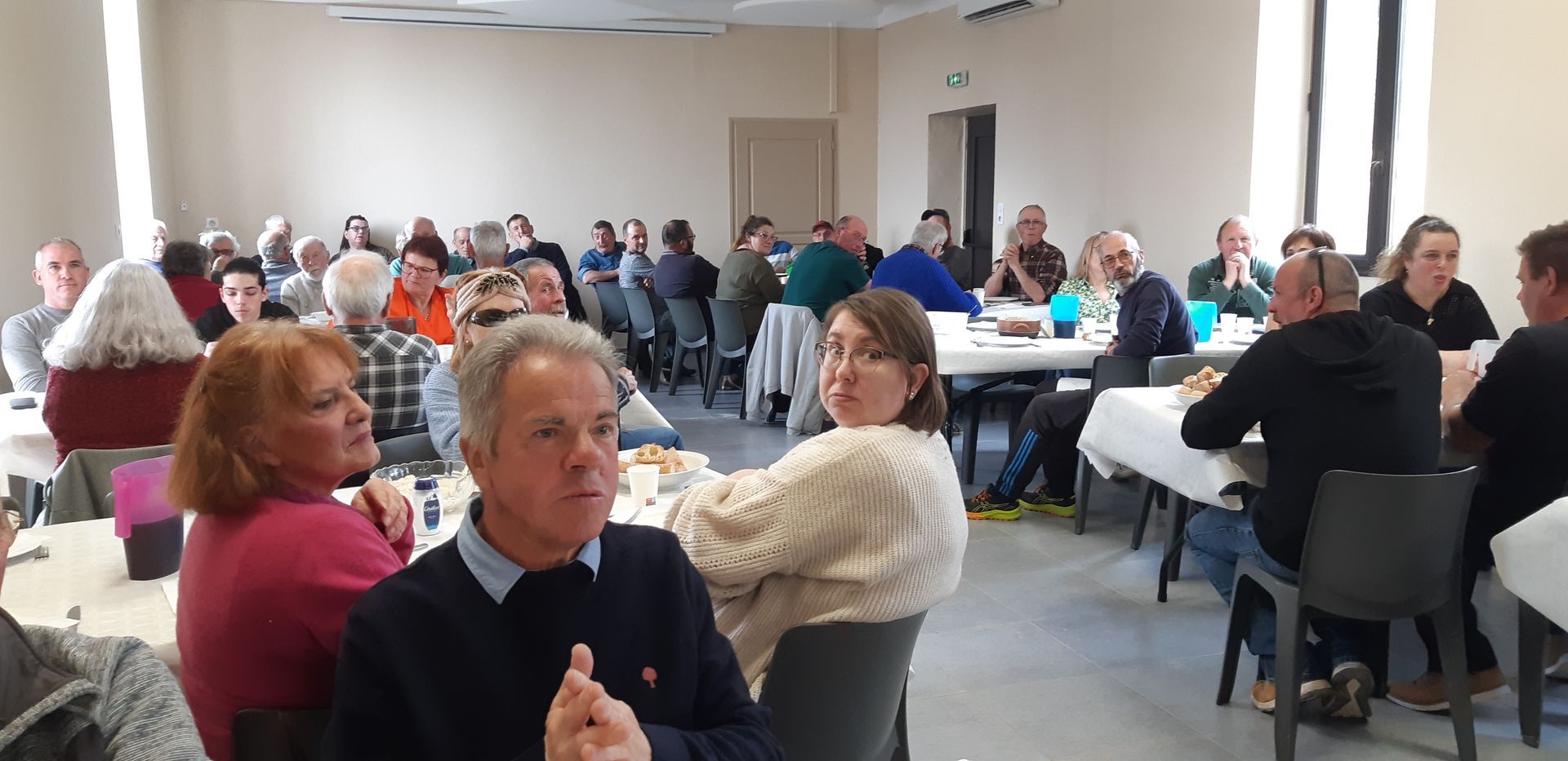 Environ 90 personnes ont répondu présent à l'aimable invitation des chasseurs, ce dimanche 17 mars par une belle journée de quasi printemps. Au delà du partage de l'apéritif et de l'excellent repas concocté et offert par nos amis chasseurs, l'accent était mis sur l'échange des traditions, des passions, des méthodes et procédures de chasse, et du rôle de la chasse dans l'environnement communal. Une découverte pour de nombreux convives. Le comité des fêtes a également contribué à la réussite de cette journée en assuranr une bonne partie du service.