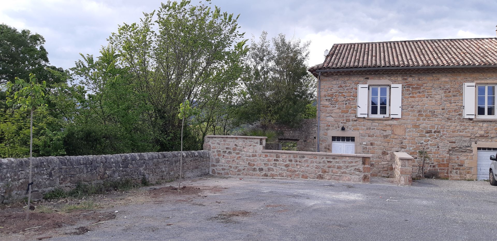 Un extérieur privatif bordé de murets en pierres de taille vient enjoliver la place de l'église devant l'ancien presbytère. Deux nouveaux mûriers platanes complètent le décor.